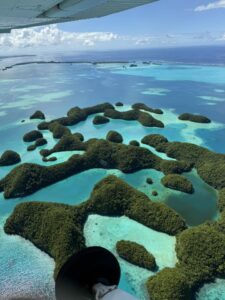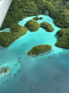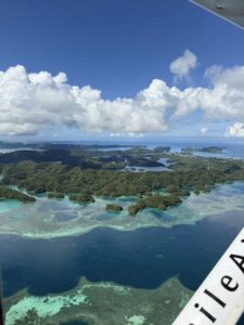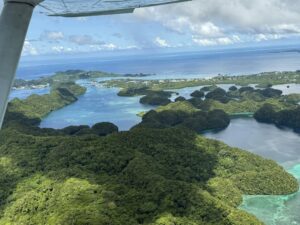 パラオ本島からペリリュー島まで有名どころのミルキーウェイ、ロングビーチ、世界遺産のセブンティアイランド、そしてペリリュー島を空から望むことができました。