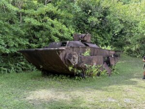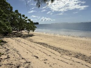 かつて血に染まったオレンジビーチにやって来ました。昭和19年9月、フィリピン占領中の日本軍を空爆するための航空基地としてペリリュー島の飛行場が欲しかった米軍は3万人の兵力でこのオレンジビーチに上陸。これに対する日本軍守備隊は約1万。2か月の激戦の末、日本軍は玉砕。ただ事前に民間人を船で他地域に疎開させていたため住民の死亡者は無かったのが不幸中の幸いです。