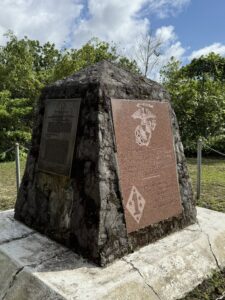 そしてペリリュー神社にお参りしました。鳥居をくぐった脇には、アメリカ太平洋艦隊司令長官兼太平洋戦域最高司令官のニミッツ提督が戦後に寄せた「日本軍兵士がこの島をまもるために命を捧げたことが、いかに勇気があり愛国的だったかを語るべきだ」という言葉が刻まれた碑があります。さらにガダルカナルでも活躍しペリリューに最初に上陸を試みた精鋭の米第一海兵隊(日本軍に一度撃退されかなりの死傷者を出した)を讃える碑も近くに建立されていました。
